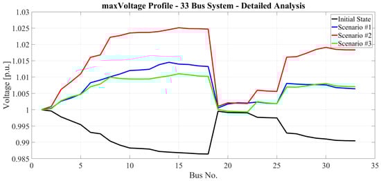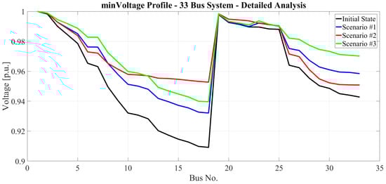 In Figure 5 the voltage profile of the 33 bus system is presented.