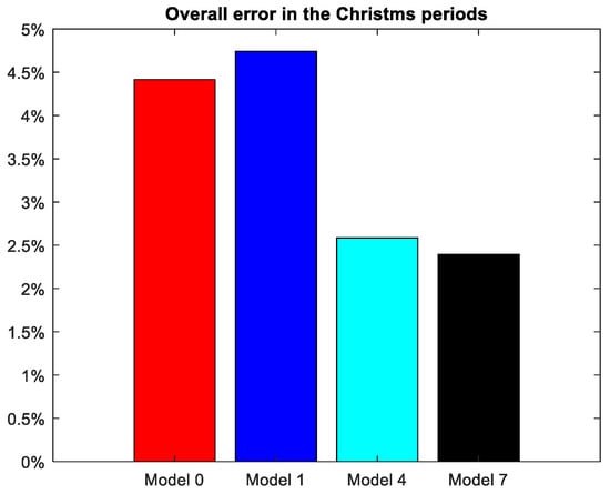 In addition, Figure 7b shows the example of Christmas day and how the coefficient profile changes in each model for this particular day. It is interesting how Christmas day shows a much lower load profile than most other special days and so it needs to be considered apart. The coefficient profile and error graphs for the rest of days within the category are included in Appendix A (Figure A2). The maximum difference between the most similar profiles is detailed in Table 8 and it shows that all profiles are independent.