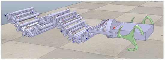 To further enhance the dexterity of the robot we analyzed the possibility of including a module with a pair of multi-joint manipulators as shown in Figure 3 on the basis of the experience gained in the Tribot design [25].