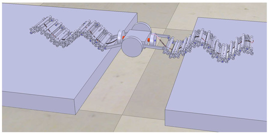 RHex robot Specific Resistance ranges between [59], while for Gregor I, an asymmetric hexapod robot inspired by a cockroach [60], the performance on uneven terrains was [61]. The robot MiniHex has a Specific Resistance on even terrain of [62]. The robot SAW requires for crawling an [26]. The results for the Tribot robot, a hybrid system with whegs and arms, , refers to high-speed locomotion on flat terrain, while an obstacle climbing task that needs both wheels and manipulator produces a cost of transport . We expected that the Specific Resistance for the here proposed hybrid system will range between the Tribot and the SAW robot and it can be considered more than acceptable. Moreover, the effectiveness of bio-inspired decision-making strategies already tested on other robotic systems will be evaluated [63,64].