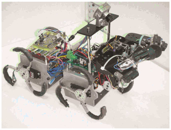 - Arena, P.; Fortuna, L.; Frasca, M.; Patanè, L.; Pollino, M. An autonomous mini-hexapod robot controlled through a CNN-based CPG VLSI chipt. In Proceedings of the 2006 10th International Workshop on Cellular Neural Networks and Their Applications, Istanbul, Turkey, 28–30 August 2006; pp. 401–406. [Google Scholar]