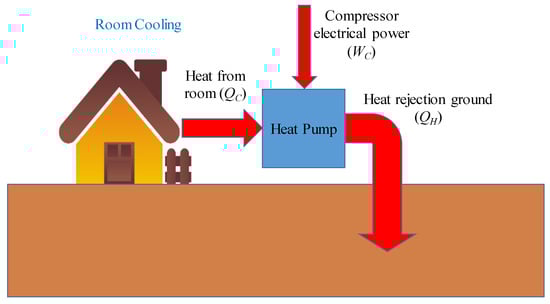 Recent research on GSHPs also has focused on the hybrid system. The GSHP hybrid system incorporates another thermal system, i.e., a desiccant or solar thermal energy. The hybrid GSHP–desiccant system allows better and more effective means of controlling space humidity and air temperature [27,28,29]. By taking direct solar heat energy, the efficiency of a GSHP during heating can be significantly improved. The hybrid GSHP–solar system offers higher thermal performance for applications, such as water heating, heat storage, or drying [30,31,32,33].
