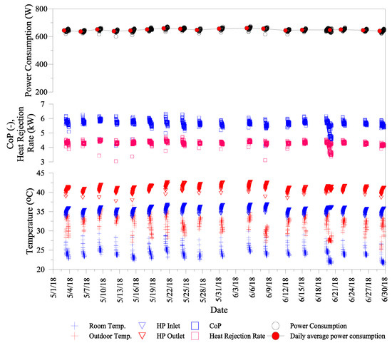 The heat pump performance data presented in this paper were recorded during May–June 2018. The heat pumps were used for intermittent cooling during the operational period.
