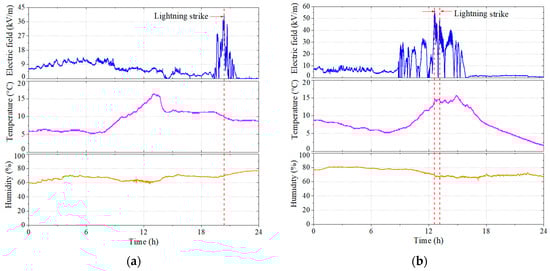 Electric field, temperature, humidity, and lightning data acquisition. (a) Case 1; (b) Case 2.