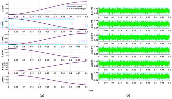 Proposed T–S fuzzy sliding mode extended-state ARX–Laguerre PI observer method for first link fault estimation in the faulty condition: (a) Real and estimation output position and (b) estimation error signals.