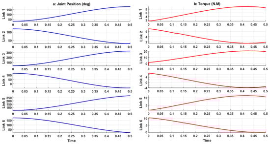 Input and output signals in the normal condition (a) Joint variable signals and (b) torque signals.