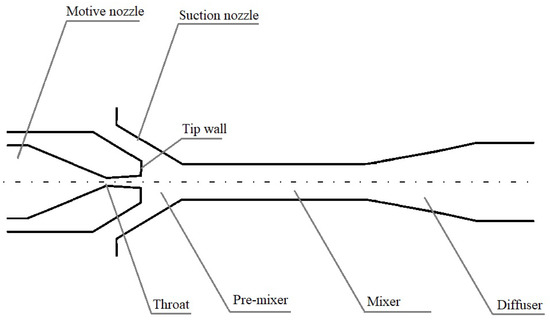 - The motive and suction streams enter the constant area mixing zone with the same pressure, and there is no mixing between them before the inlet of the constant area mixing;