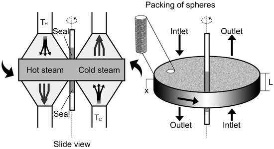- Dallaire, J.; Gosselin, L.; da Silva, A.K. Conceptual optimization of a rotary heat exchanger with a porous core. Int. J. Therm. Sci. 2010, 49, 454–462. [Google Scholar] [CrossRef]