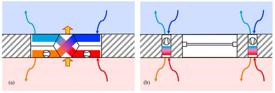 Recently, heat recovery systems have been considered to be combined with building components such as building walls [48,49,50,51], roofs [52] and wind towers [53,54,55,56]. For example, it has been found that wind towers can provide significantly higher airflow rates than open windows with the same area [57]. However, application of wind towers is generally limited to tropical climates because seasonal temperatures in colder climates are too low to circulate directly into interior spaces. Wind towers are usually closed to avoid loss of heating energy in winter [55]. To address this limitation, combining heat recovery technology with wind towers could be a sensible solution. This kind of integration would be helpful for stabilizing the heat flux of buildings to reduce total energy consumption demands and enhance indoor thermal comfort.