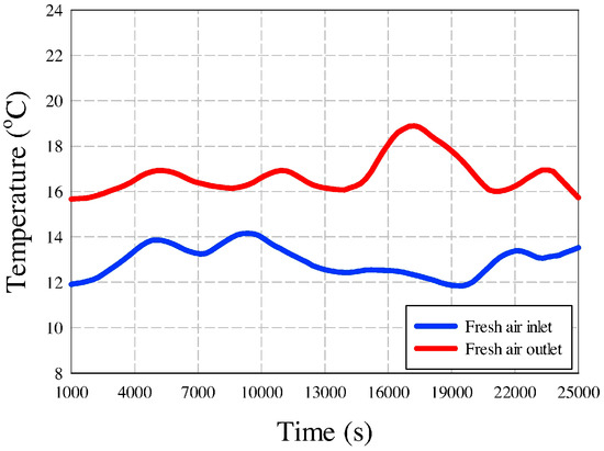 Recently, Cuce et al. proposed a novel polycarbonate heat recovery system. The experiment carried out measurements of temperature, relative humidity, and CO2 in a period of one week. The results indicated that through the application of the novel system within the testing house, a sensible increment, about 7 °C, was observed in the temperature of fresh air and a considerable decrease, about 4 °C, was achieved in the temperature of stale air [47]. They also showed that the average relative humidity in the testing room in the post-retrofit case was around 57%, which was within the desired range [47]. Figure 14 shows a temperature monitoring diagram during the testing period. The Cuce et al. experiments proved that by utilizing a combination of heat exchanger and ventilation, except for the mitigation of the heating or cooling load, the actual comfort conditions for indoor environments including CO2 concentrate and relative humidity reaching the desired range can also be achieved [47].