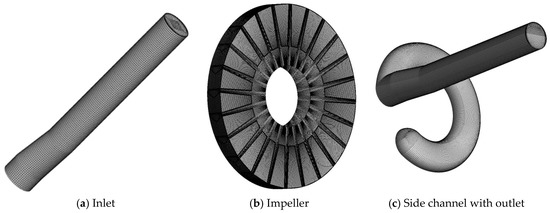 Figure 3 shows the overview of the mesh generated. The impeller, side channel and inlet are meshed with 0.1 million, 3.4 million and 1.0 million, respectively. The grids for the impeller and side channel interface are refined with large numbers for high precision.