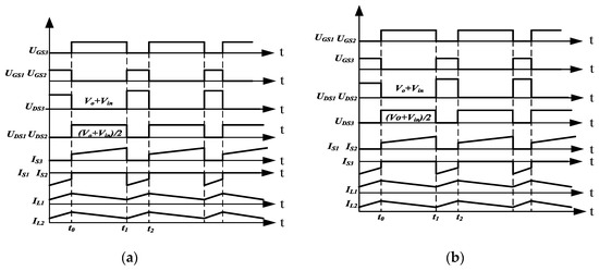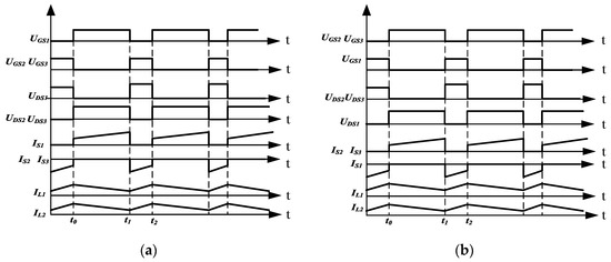 According to Equations (25) and (27), average currents IL1 and IL2 on inductors L1 and L2 can be obtained as