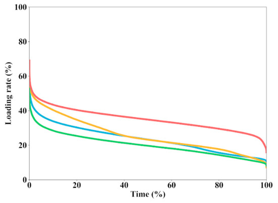 This heterogeneity influences severe congestion and voltage in the network. In order to compensate for the voltage drop and to avoid subsequent undervoltage at the end of the feeder, the voltage at the LV side of a MV/LV power transformer has been traditionally set over 1 p.u. [1] with a conventional off-line fixed setting [37]. Meanwhile, conventional options to tackle congestion go predominantly through network oversizing and extension, as in the case of rating upgrade of power transformer or construction of new secondary substations to overcome critical situations that take place in short periods of time [38,39], as can be seen in the load duration curves of a set of Smartcity Malaga power transformers displayed in Figure 2.