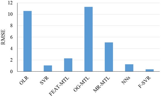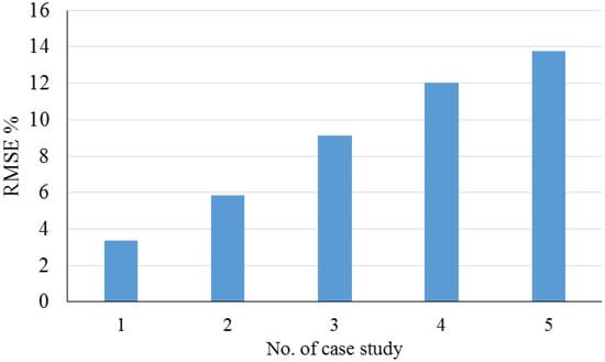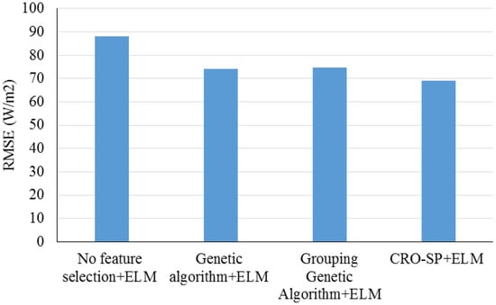 Ma et al. (2017) [49] developed a soft sensor (a field-support vector regression) to upgrade the estimation accuracy of solar irradiance levels from photovoltaic electrical parameters. The soft sensor collected its input data into several groups based on ambient temperature. The introduced soft sensor can be implanted in a photovoltaic module, a current sensor, or a thermometer. It was validated by experimental prototype and simulations utilizing measured outdoor conditions. Figure 12 presents the RMSE values for the study.