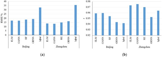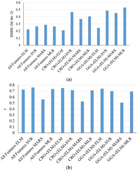 (a) RMSE and (b) correlation coefficient values for study by Bassam et al. (2017). Reproduced from [59], Elsevier: 2017.