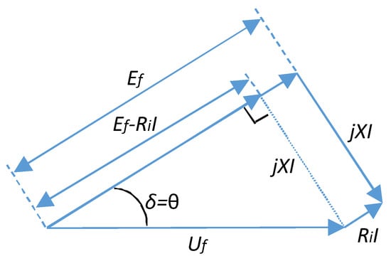 The phasor diagram for the phase equivalent for a non-salient synchronous generator with CTA control can be seen in Figure 2 where X is the machine reactance. The output phase voltage, , for a non-salient synchronous generator then becomes