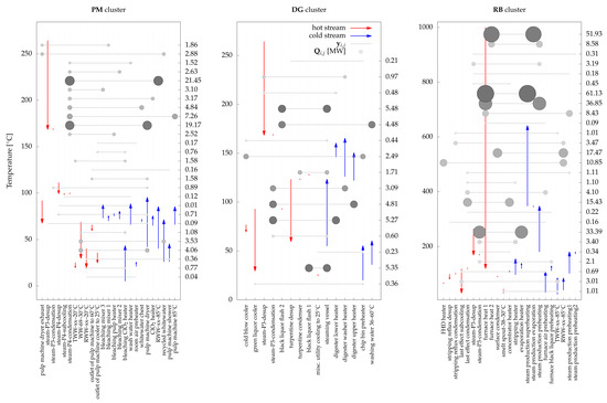 Grand composite curves of considered clusters for kraft case study.