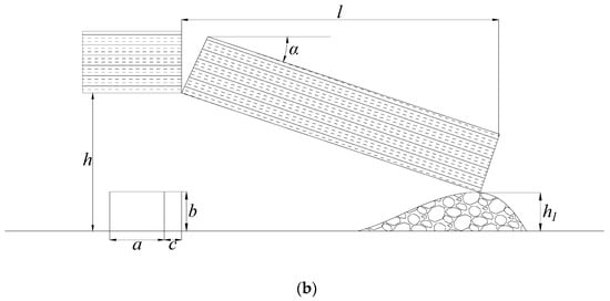 where h1 is the distance between the floor to the point where the main roof block touches the gangue, m; a is the width of the RGE, m; c is the width of RBB, m; l1 is the pre-breaking position of the key block, m; l is the length of the broken block, m.