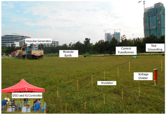 Field measurements undoubtedly can provide important results concerning the impulse characteristics of earthing systems since they represent the closest scenario to when high currents are practically discharged to grounding. With the improvement of impulse voltage/current generators which can be mobilized to the sites, impulse characterisations of earthing systems under high impulse conditions by field measurements have now become popular. Since then, a lot more studies have been directed towards impulse tests on earthing systems using field measurements. However, the measurement and testing methods found in these papers [11,13,14,15,16,17,18,19,20,21,22,23,24,25,26,27] differ from one another, which could be due to the lack of standards emphasising the required guidelines, as well as the great dependence on the available configurations and test site.