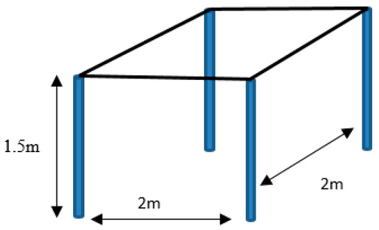 Configuration 2 for the tests, consisting of a 2 m × 2 m grounding grid.