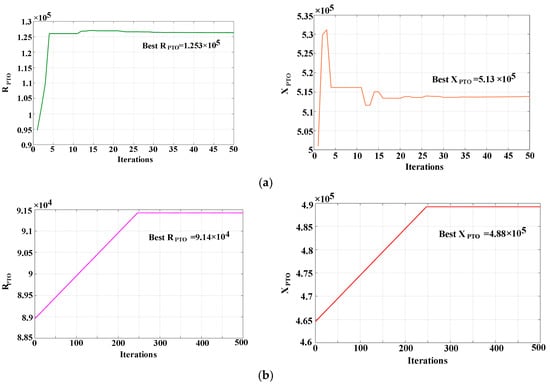 The physical meaning of the Functions (17) and (18) is that when the equivalent mechanical impedance of the permanent magnet synchronous motor matches the inherent mechanical impedance of the point-absorbing type WEC, the oscillation of the buoy resonates with the wave motion, and the power extracted by the system reaches a maximum from the wave. Therefore, the damping coefficient (RPTO) and the stiffness coefficient (XPTO) of the permanent magnet synchronous motor need be controlled. According to Equations (6), (7) and (18), the following conditions should be met as,