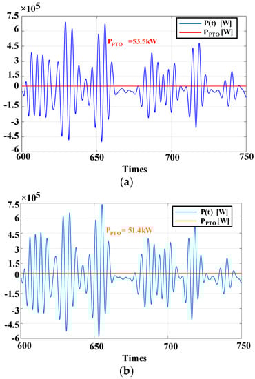 According to Equations (13)–(15), superimposing the average power at each frequency is the average power captured by the PTO load in the case of irregular waves. After simplification, the average power captured in the frequency domain is as follows,