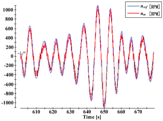 Measured speed vs. the reference speed of permanent magnet synchronous generator (PMSG).