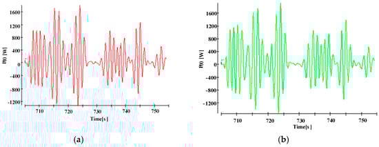 Figure 15 shows the instantaneous mechanical power applied to the shaft of the synchronous test bench by FPA and the Hill-climbing method, respectively. Compared with Figure 15 and Figure 10, it can be seen that the measured instantaneous power is very similar to the simulated result. It is only numerically reduced, due to limitations of experimental conditions.