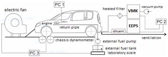 During the measurements, vehicle operating data from the engine control unit was recorded via the OBD interface (engine speed, engine load, speed, MAF, IAT). Car diagnostic system VAG–COM was used for communication and recording data from the OBD.