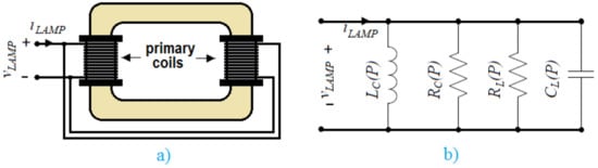 - Silva, M.F.D.; Chagas, N.B.; Schlittler, M.E.; Fraytag, J.; Marchesan, T.B.; Bisogno, F.E.; Alonso, J.M.; Prado, R.N.D. Electric Equivalent Model for Induction Electrodeless Fluorescent Lamps. IEEE Trans. Power Electron. 2013, 28, 3603–3613. [Google Scholar] [CrossRef]
