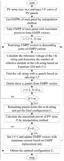 Based on the analysis above, the detailed reconfiguration algorithm for a PV array with SP topology is shown as follows: