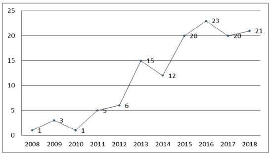 The topic of “EPC mechanism and business models” resulted in the second highest number of publications from 2008 to 2018. This topic concerns the effectiveness of EPC projects and EPC industry; particularly, subtopics of evaluation of EPC projects, contract arrangement/management in EPC projects, EPC market/mechanism, and EPC business models were involved (e.g., [46,49,52]). This topic tends to be an important focus in the future because how to effectively evaluate EPC project performance and develop EPC market and business is critical [44,50].