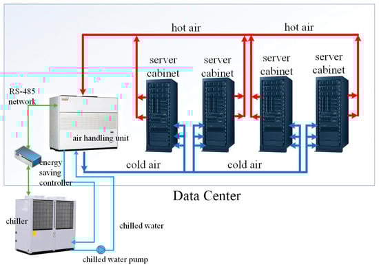 System structure of energy saving control for data center air conditioning system.