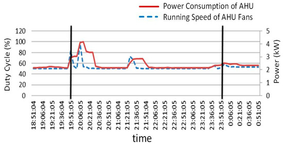 Running speed of AHU fans and AHU power consumption.