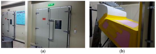 Air-enthalpy-type test room: (a) Korea/International Laboratory Accreditation Cooperation (ILAC) accredited chamber; (b) test sample.