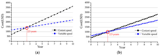 The results of the economic analysis for both types (constant, variable) of air conditioners are shown in Figure 12.