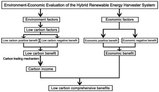 Low-carbon benefit evaluation is based on the characteristics of the carbon emission reduction from photovoltaic and wind power generation, which is the algebraic sum of low-carbon positive and negative benefits that are generated during the whole life cycle. The low-carbon income of photovoltaic or wind power represents the economic benefits of the low-carbon benefits through the carbon trading mechanism. Kannan et al. [49] studied the potential low-carbon benefits and low-carbon income of a 2.7 kWp photovoltaic system. In their study, the construction, operation, and recovery phases of the photovoltaic power plant were considered. Furthermore, Ito et al. [50] analyzed six different large-scale solar photovoltaic systems using the LCA method and calculated the carbon dioxide emission intensity and the energy recovery period of the system. The result showed that the photovoltaic system with thin-film battery has the shortest carbon and energy recovery period.