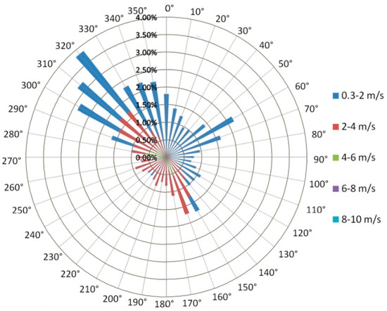 According to the studies (including CFD simulations and experimental tests), the shape of the VRGV was optimized for the maximum utilization of wind energy, and the optimized wind velocity increased by a factor of 1.63 due to the optimized VRGV design being found. Therefore, the increased wind velocity () data in the presence of the optimized VRGV at the region of the wind turbine (height of 11.1 m) in Subang, Malaysia are listed in Figure 14.