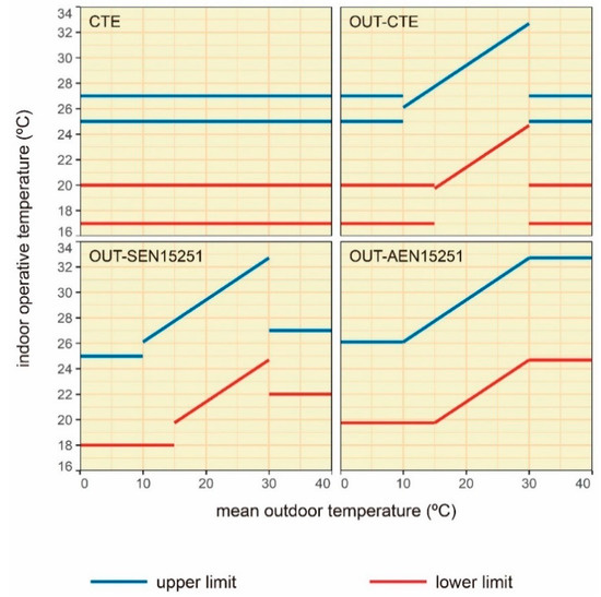 | OUT-CTE model | Adaptive model of EN15251; when the adaptive model is not applicable, the CTE static model is applied. |