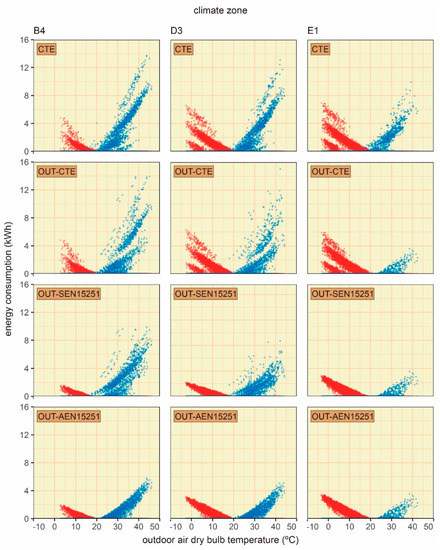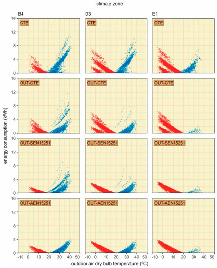- Pérez-Andreu, V.; Aparicio-Fernández, C.; Martínez-Ibernón, A.; Vivancos, J.L. Impact of climate change on heating and cooling energy demand in a residential building in a Mediterranean climate. Energy 2018, 165, 63–74. [Google Scholar] [CrossRef]