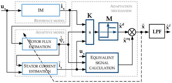 Block diagram of the applied speed estimator Eq-SMMRASCC [27]. IM: induction motor, LPF: low pass filter.