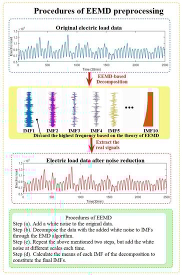 - The method introduced in this paper utilized a data preprocessing technique to improve the accuracy of the proposed approach. Raw electric load data is first broken down into sub-signals. Signals with high noise are taken away and the rest are reorganized into a more stationary series. In this way, the uncertainty and irregularity in the electric load data can be decreased and features in the electric load data can be better analyzed. Eventually, the performance of the proposed method is enhanced.