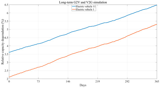 Long-term G2V and V2G simulation for EV1 and EV11.