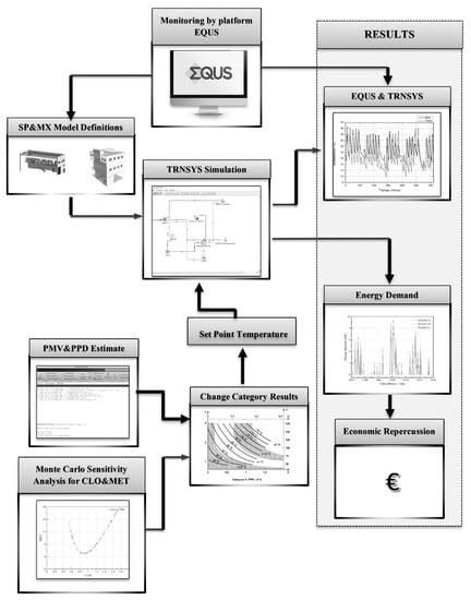 In this section, we discuss the results of the simulations of both buildings. First, we will show the verification of the monitoring using the data from Equs and the TRNSYS simulation of each building. Then, after a second simulation, we will get the energy demand using the calculated results for the category change, depending on the estimation of the PMV and PPD values as well as the sensitivity analysis of the CLO and MET variables. Finally, we analyze the economic impact of energy demand savings.