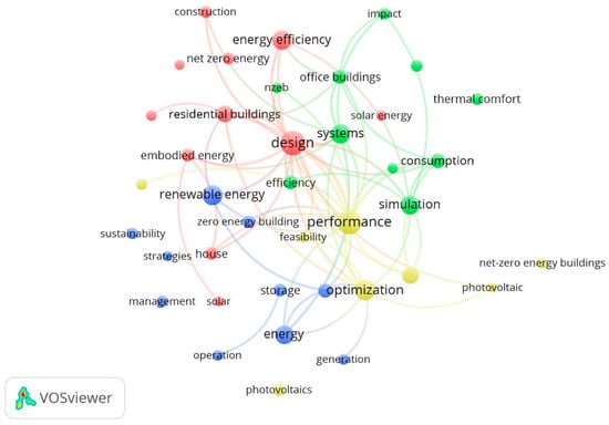 Keywords co-occurrence map representing the relationship between different research topics on NZE.