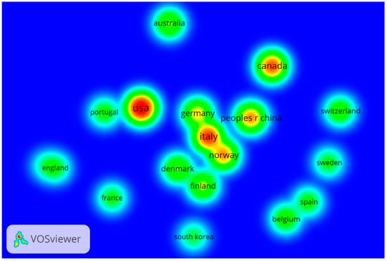 The most influential countries in the research domain of NZE in the urban environment are: the United States, with 156 research documents and 814 total citations; Italy, with 49 documents and 891 total citations; and Norway, with 24 documents and 615 total citations. China is the only developing country on the list and ranks fifth, after Canada, with 44 publications and 320 citations. This is likely due to China’s rapid urbanization and the demand for the control of pollution caused by excessive emissions (refer to Figure 7).