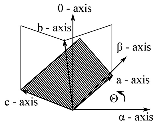 The physical importance of the coordinate transformation of the equations mentioned above is shown in Figure 3. The vertical angles from the plane - into coordinates a-b-c are the same, namely , and axis a is located above axis [13].