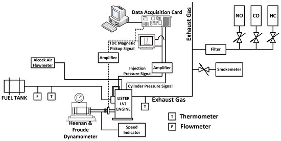 Figure 1 shows a schematic view of the experimental apparatus used to perform engine tests in “Lister LV1” DI diesel engine using test fuels DI1, RME30, GLY10, and GLY30.