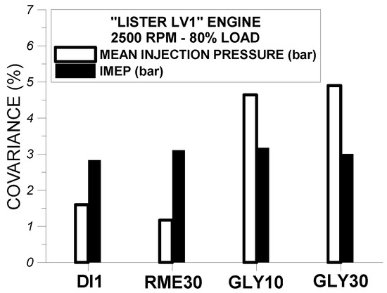 where σ and μ are the standard deviation and the mean value of IMEP over all recorded complete engine cycles. A similar mathematical relation with the aforementioned one was also used to calculate the covariance of the mean injection pressure for assessing the effect of test fuels on the cyclic variation of mean fuel line pressure.