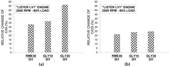 It should be clarified that all engine tests at 2500 rpm and at each engine load were performed by keeping the dynamometer load (i.e., hydraulic brake weight) constant when changing from one fuel to another. Hence, since variations in heat of combustion were experienced between fuels DI1, RME30, GLY10, and GLY30, the fuel consumption was adjusted at each load when moving from one fuel to another in order to keep the dynamometer weight constant.